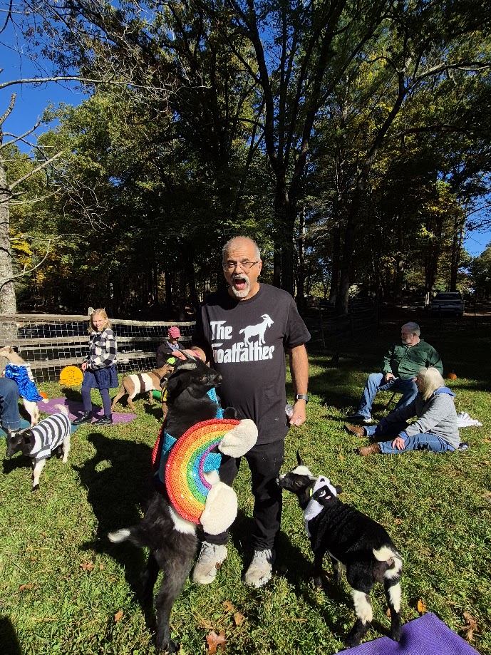 Yesterday we got to hang out with some goats with our friends who live up in Georgetown. We got to dress them up in costumes, which was not that easy! Naturally I had to be the Goatfather. It really is a pretty cool feeling to hang out with these animals, and the babies are so warm and snuggly. Studies have shown that goats can distinguish human facial expressions and prefer to interact with humans who appear to be happy so they are pretty emotionally intelligent animals. A cat names Penny also appeared to be pretty attached to me, which was cool. After the mingle we went over to our friends’ house and hung out for a while and had lunch. Sat outside for a bit on the patio, it was pretty nice outside in the sun.