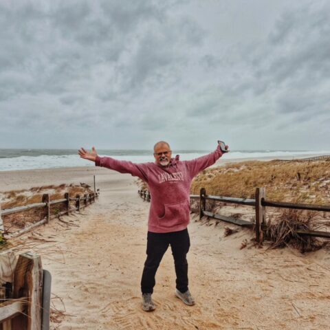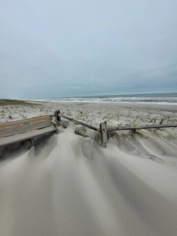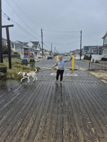 Well, we braved the weather and made it to the shore. There were areas of the shore that did flood, but thankfully not at all where we were. The weather wasn’t the greatest but we did get to see the power of nature. The waves were huge but the wind was the real nasty. Didn’t stay on the beach long because the sand would whip into your face like little stabbing needles. Glad we went though! I got to hang out with my four pawed friend Charlie, he is like the sweetest doggo.
