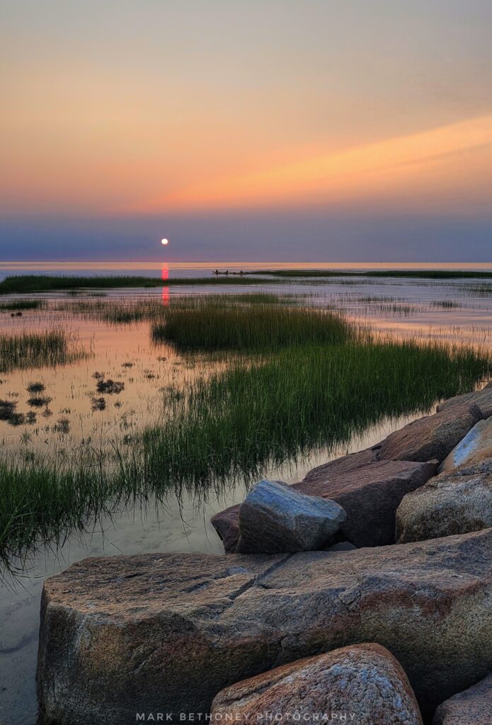 Here’s another shot I took over the summer that was just sitting around in my archives, so I figured I’d dust it off and put it out there. The cool thing about this shot is the kayakers way out in the distance. I have a bunch of shots where I zoomed in more on them but then I figured I liked this long out shot better with the rocks in the foreground. What this shot doesn’t show you is all the bugs flying around and biting people. That’s why at a location like this I wear a hoodie and cover myself up even though it was like 90 degrees outside. I’ve tried the bug spray and all but that doesn’t work. I find the hoodie actually works best. As an aside, I believe this was also the night that we went here with another couple (a good longtime friends of LD’s and her boyfriend) and they had to park really far away since the lot here was so small and they had a police officer basically telling people they couldn’t park there because it was full. So when we were close to done he was literally running all the way down the street to get the car, and it was quite a ways. Not really sure why he was running though. I think we eventually picked him up before he got to his car. The details of the night sort of escape me now but I do remember that being a part of it.