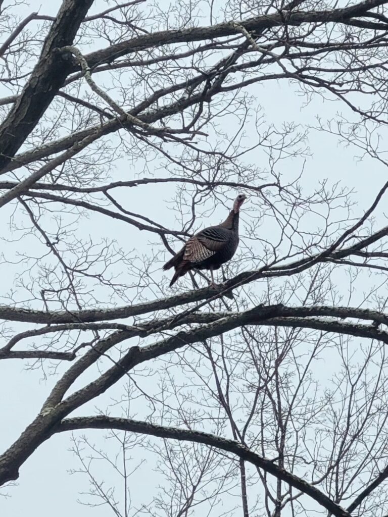 Not everyday you get to see a turkey in a tree. At first we thought it might have been a goose but that wouldn’t make any sense. I never saw a turkey in a tree either but here it is.