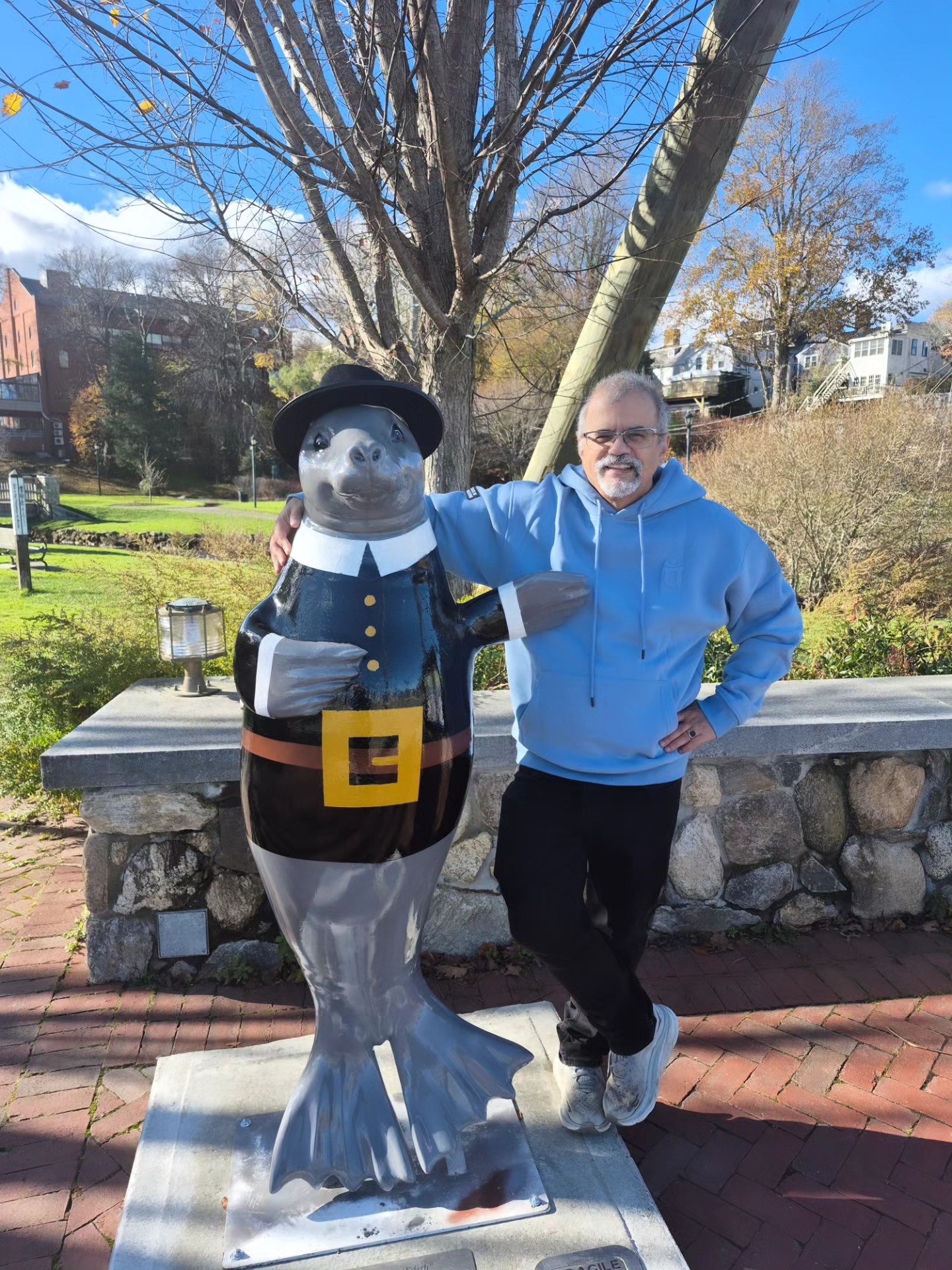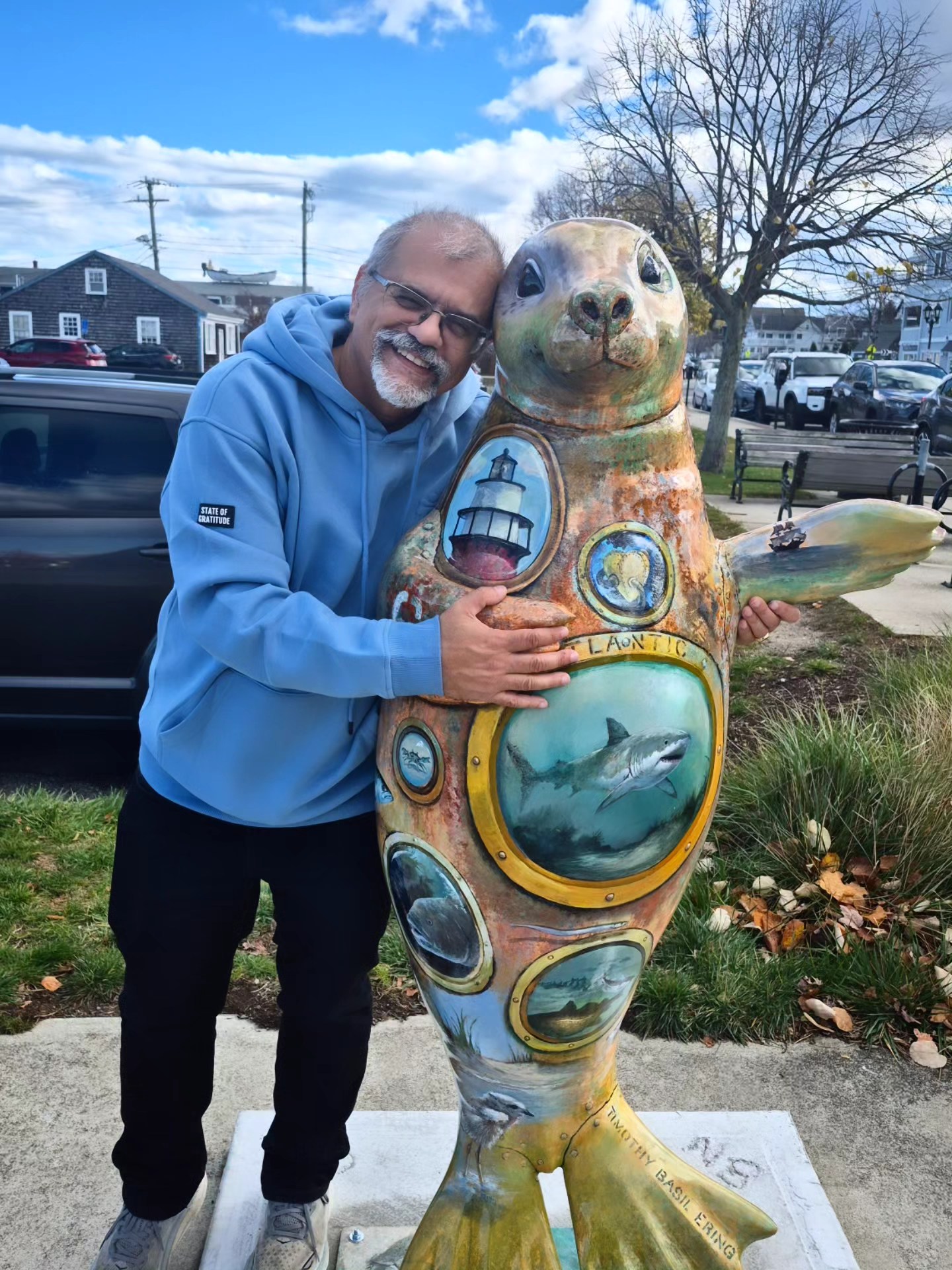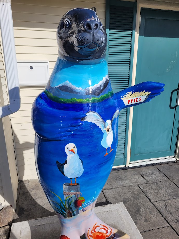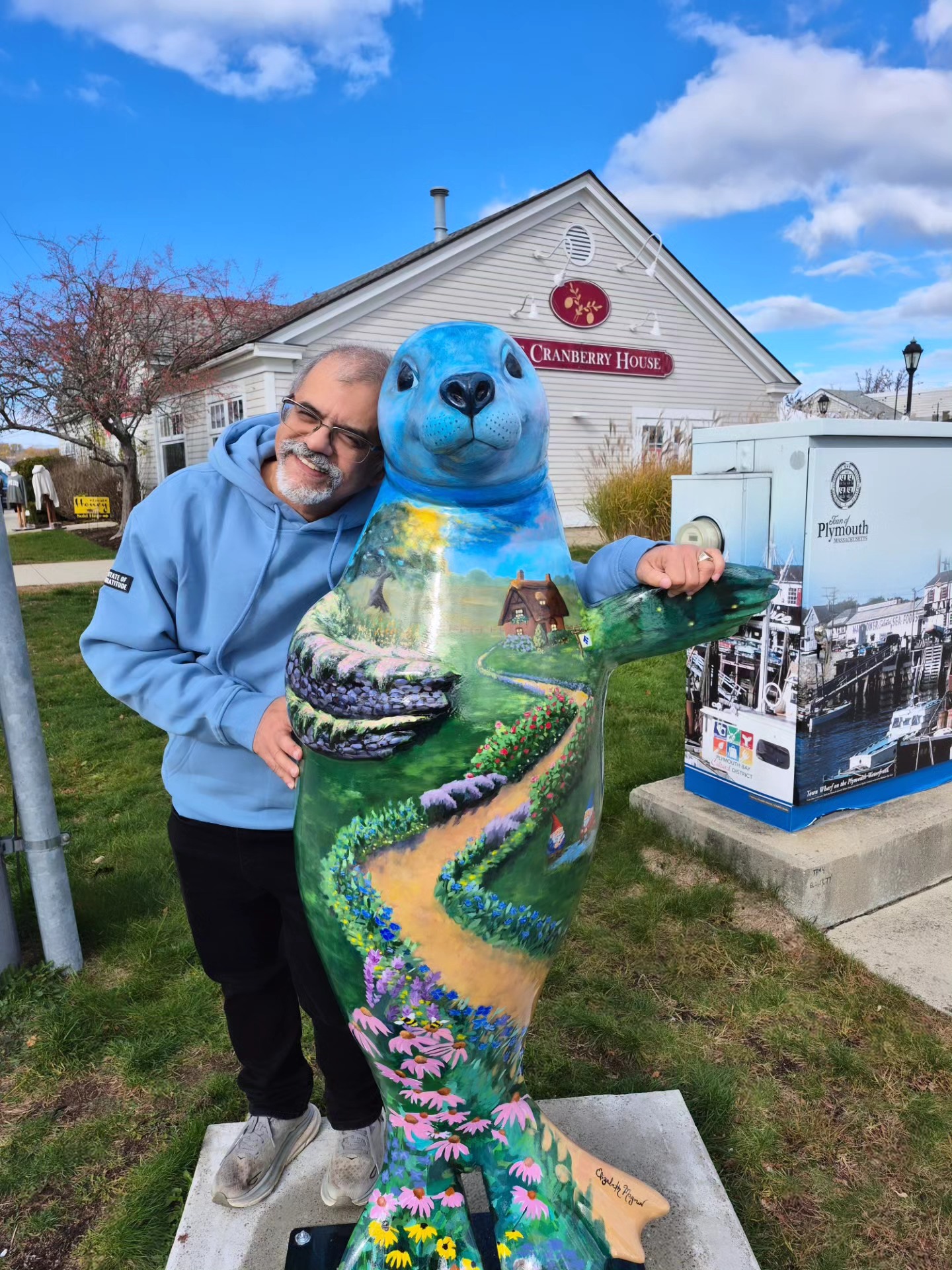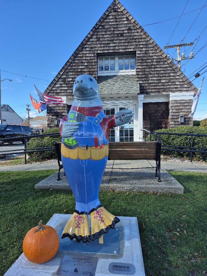 Why seals? According to the Plymouth Chamber of Commerce, “As playful and iconic coastal creatures, seals represent the spirit of Plymouth’s harbor and the vibrant marine life that calls it home. Each sculpture tells its own story—paying tribute to the town’s seafaring roots, its artistic community, and the scenic beauty that defines our corner of the South Shore.” I couldn’t agree more!