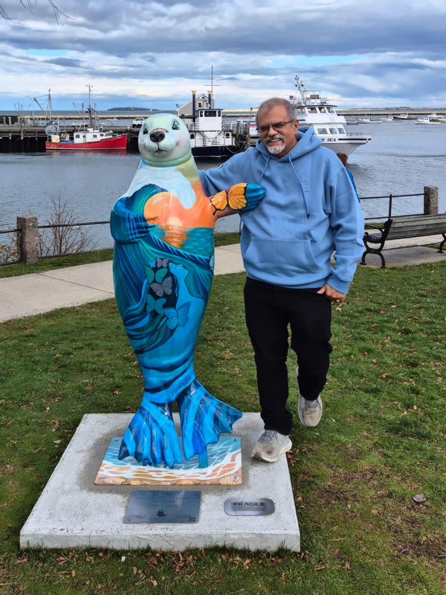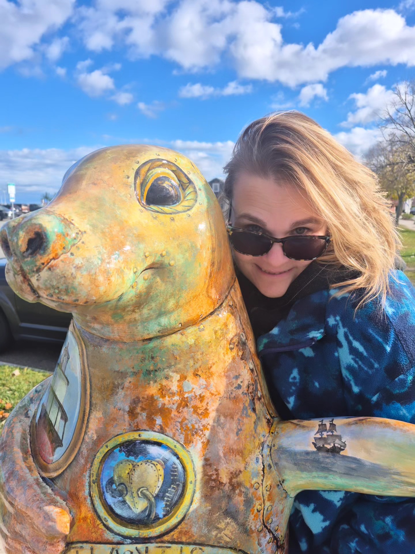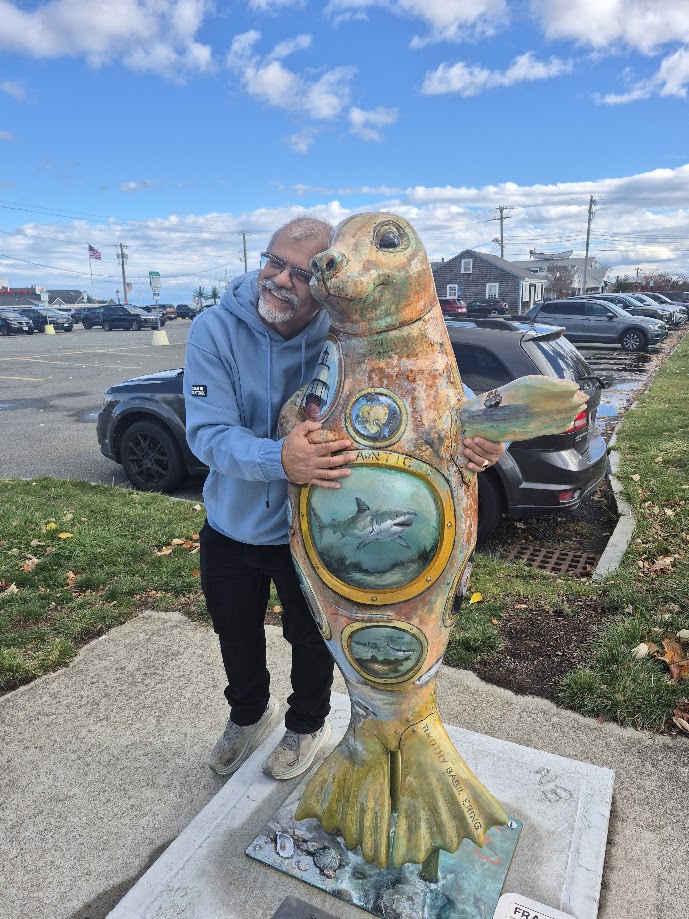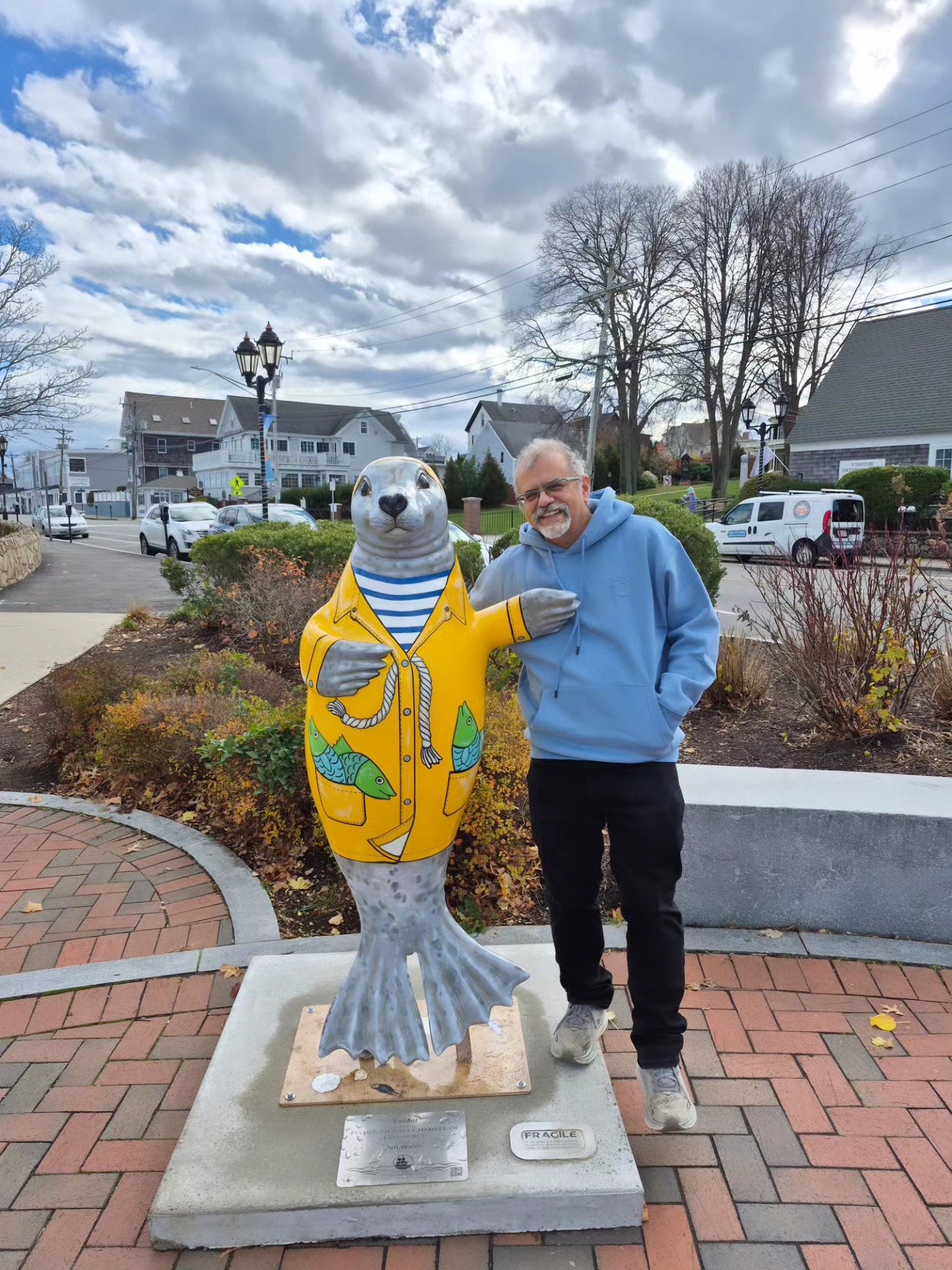 Why seals? According to the Plymouth Chamber of Commerce, “As playful and iconic coastal creatures, seals represent the spirit of Plymouth’s harbor and the vibrant marine life that calls it home. Each sculpture tells its own story—paying tribute to the town’s seafaring roots, its artistic community, and the scenic beauty that defines our corner of the South Shore.” I couldn’t agree more!